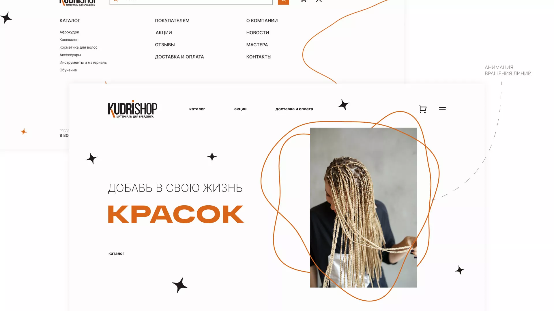 Создание интернет-магазина по продаже афрокудрей и других материалов для брендинга в Кирове. Целевая аудитория — молодые и современные девушки, желающие разнообразить свой образ.